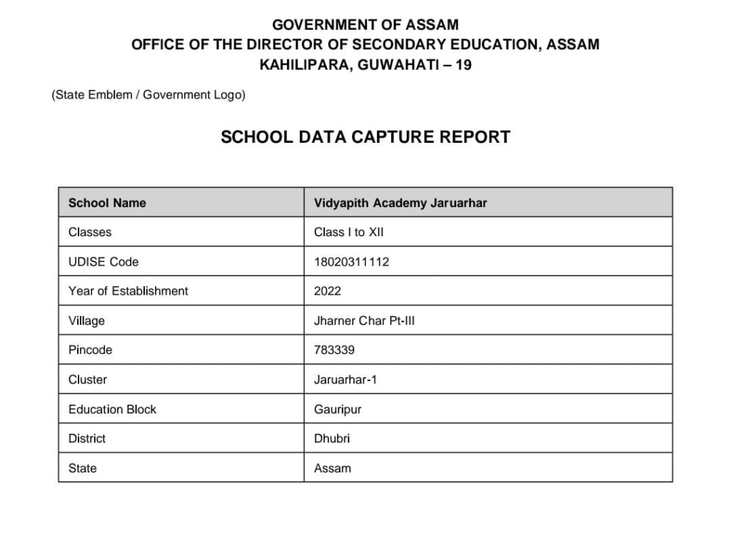 UDISE Code-18020311112